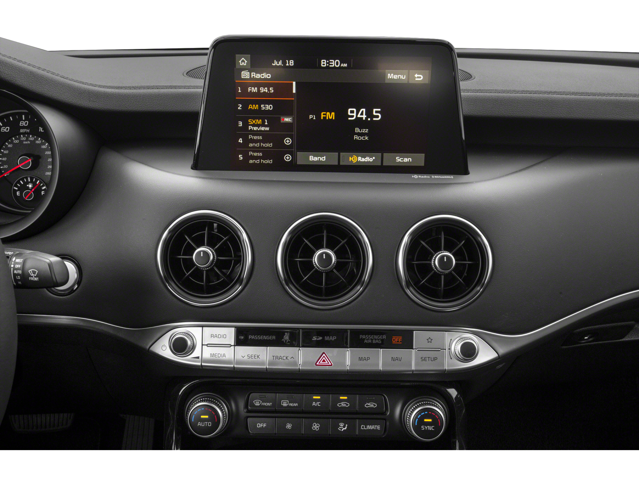 - Radio: AM/FM/MP3/HD/SiriusXM harmon/kardon Audio -inc: 720 Watts, AVN 5.0 premium navigation system, 8" color touch-screen display, 15 speaker premium surround sound including dual underseat subwoofers and ClariFi sound-enhancing technology, UVO eServices infotainment system, support for Android Auto and Apple CarPlay, USB input, Bluetooth® wireless connectivity, steering-wheel-mounted controls and voice recognition